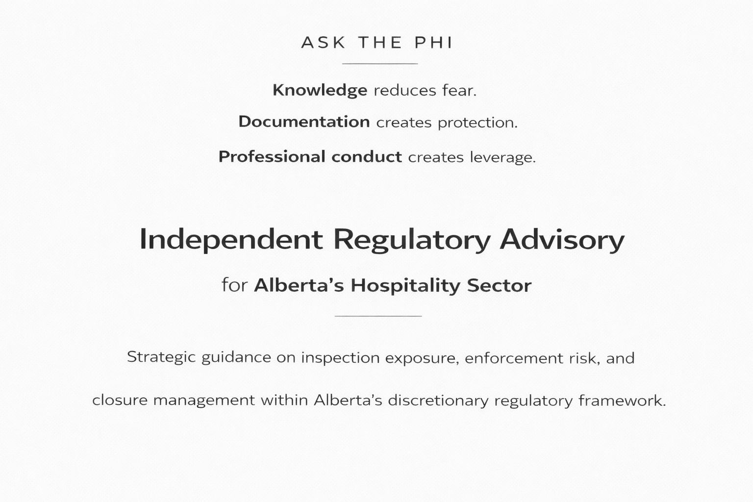 Information on this website is provided for general informational purposes only and does not constitute legal advice. Inspection and enforcement outcomes may vary based on specific circumstances, regulatory discretion, and applicable legislation. No guarantee of outcome is made.